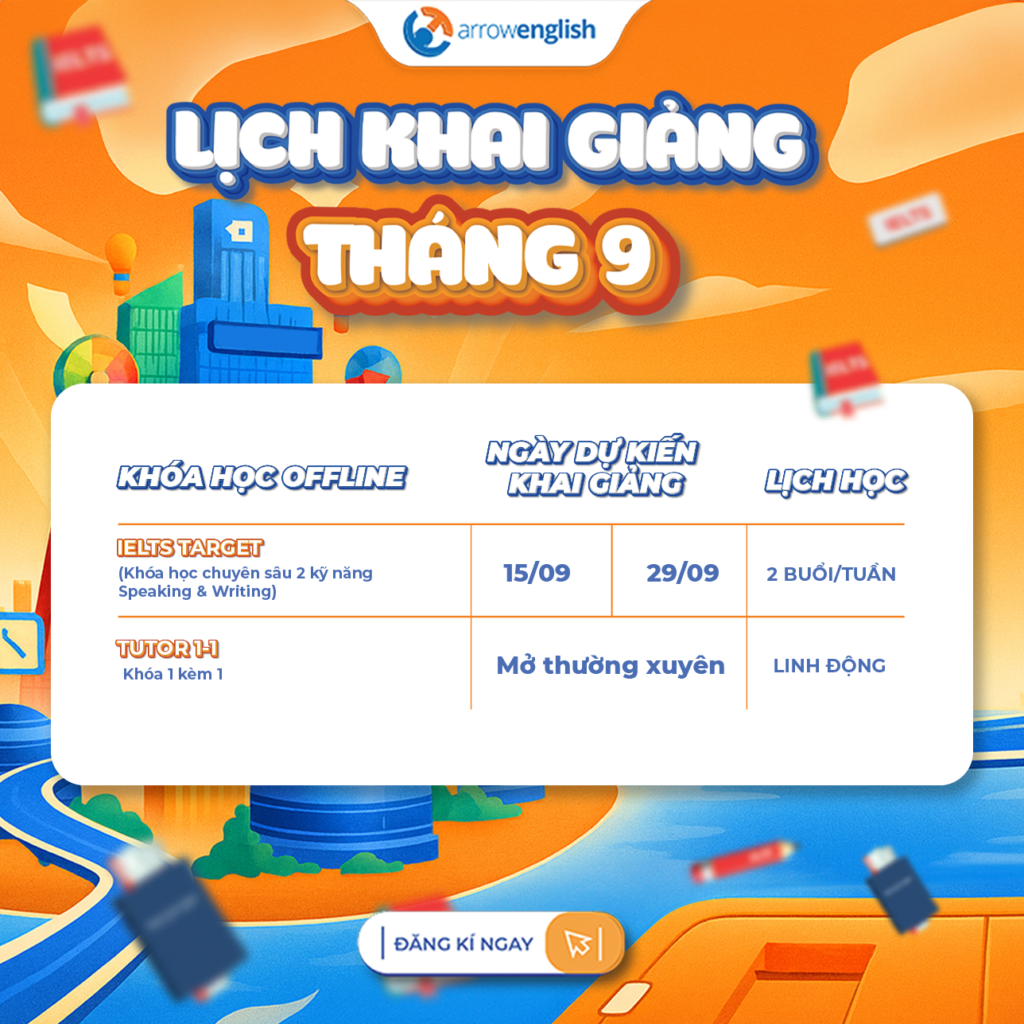 📅 Lịch khai giảng tháng 9 đã có! Nhanh tay giữ chỗ để không bỏ lỡ cơ hội tăng band điểm cùng Arrowenglish!
